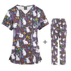 Uniformi da ospedale in cotone stampate a manica corta tute da salone di bellezza orale femminile spazzola da ospedale per animali domestici uniforme